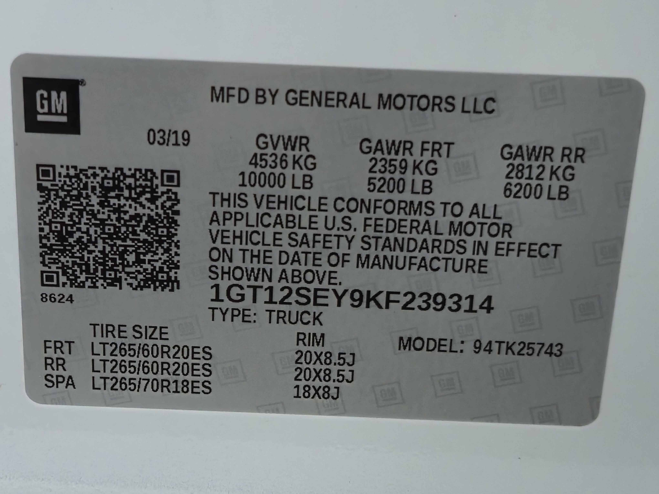 - 1GT12SEY9KF239314