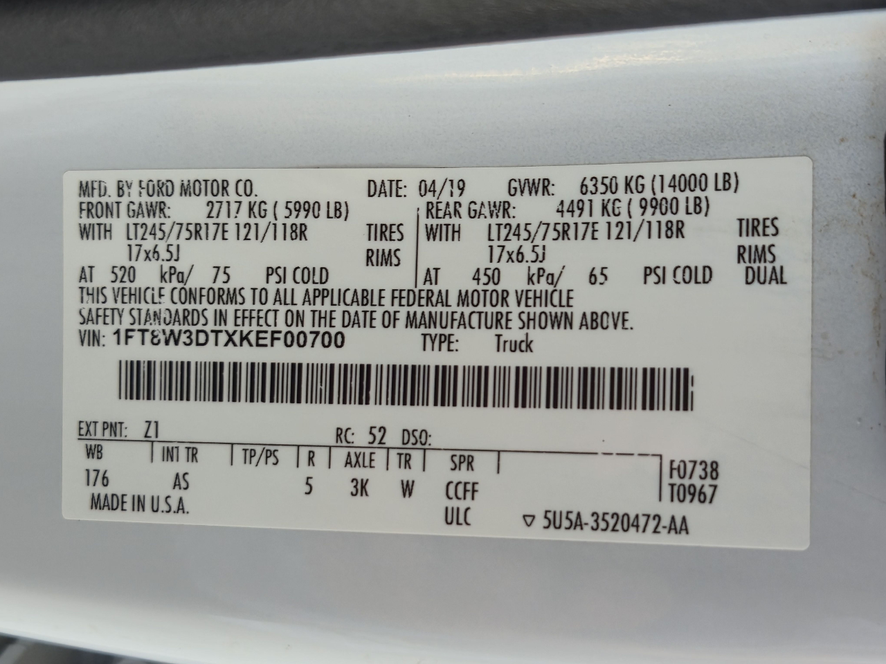 - 1FT8W3DTXKEF00700