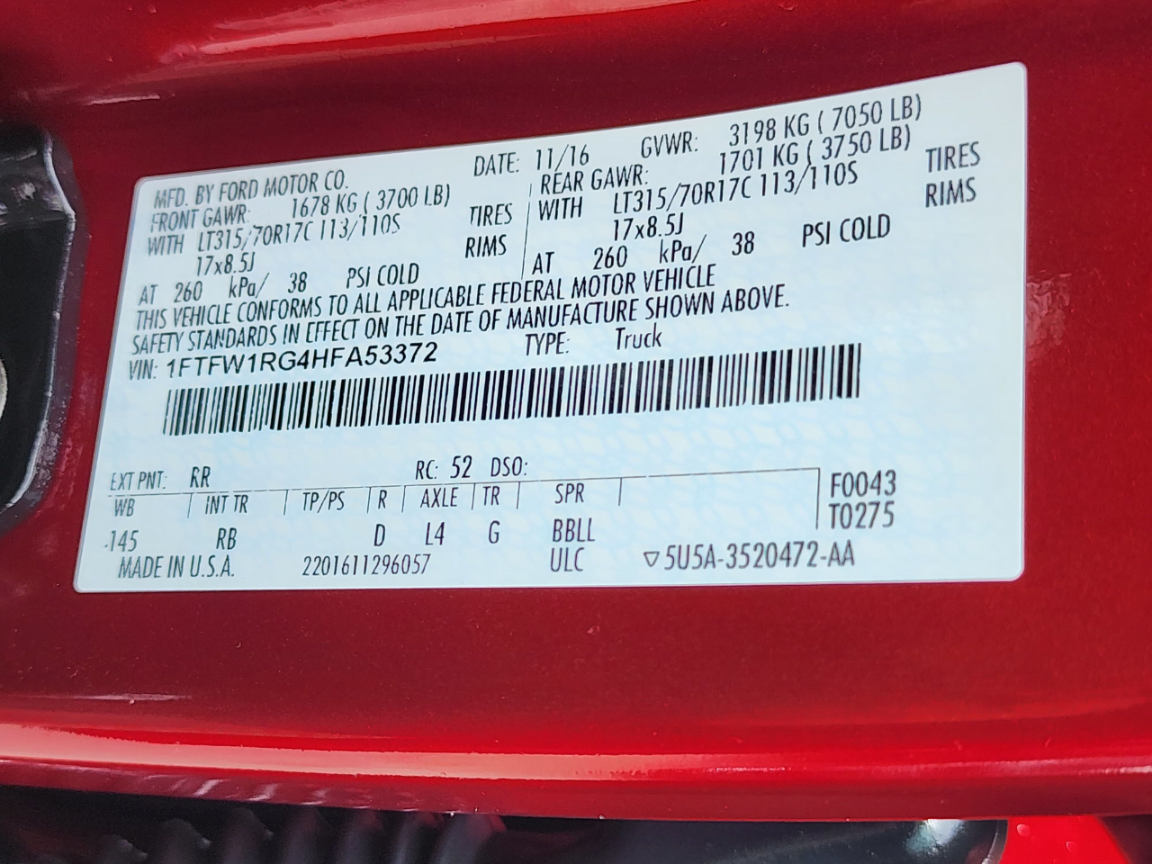 - 1FTFW1RG4HFA53372