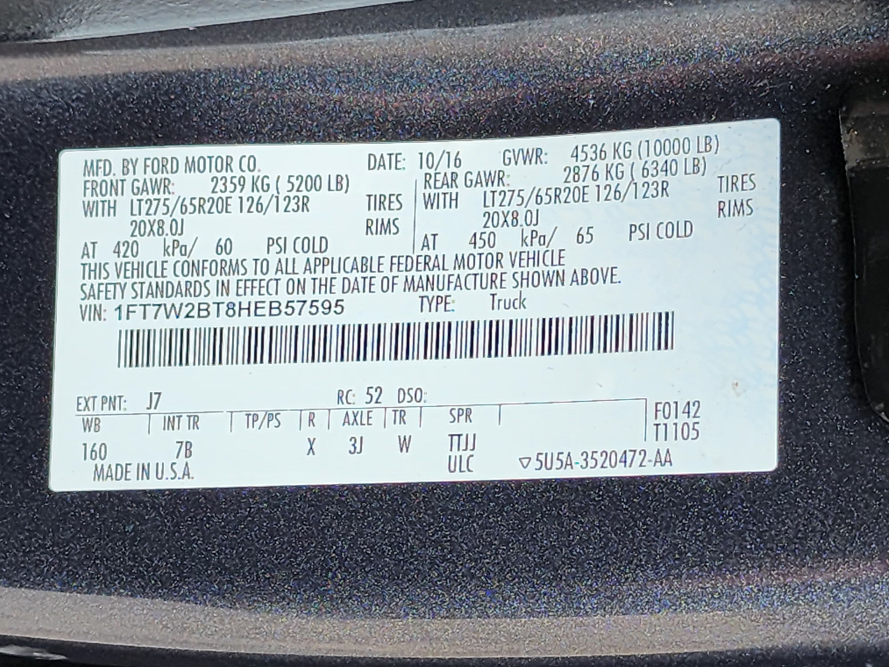 - 1FT7W2BT8HEB57595